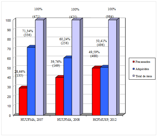 Entretanto deve-se considerar que o número de itens licitados em 2007 (471) e 2008 (425) no estudo realizado por Monteiro et al.11, foram inferiores aos obtidos no presente estudo, que foram 984 itens em 2012.