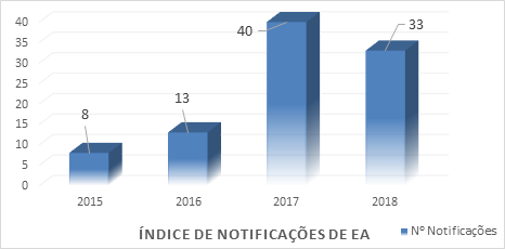 Com a implantação das ferramentas e medidas, houve um aumento da cultura de segurança do paciente em 357,14% com aumento das notificações de near miss (eventos que podem ser controlados para não causarem dano), antes subnotificadas, garantindo assim, maior cultura de segurança (Figura 3).