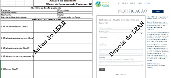 Figura 7. Formulário de notificação NSP – Antes do LEAN e depois do LEAN.