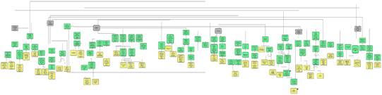 A modelagem de processos permitiu a identificação de um conjunto de efeitos indesejáveis presentes nos processos registrados. Na Figura 4, está representada a árvore de realidade atual do projeto, em que buscou-se encontrar a relação de causa e efeito entre os 129 problemas levantados.