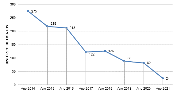 Como reflexo de todas as ações que foram adotadas, foi possível obter uma redução próxima a 1.450% no número total de sinistros que ocorreram na Instituição, como ilustra a seguir o Gráfico 3.